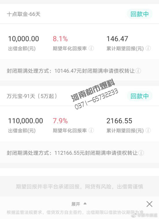 而年化率也比通常是3%~4%的银行理财要高出许多,悟空理财的产品预计年化率都在6%~10%。而张女士最近没有到账的两笔钱,购买的产品是为期66天“十点取金”和91天“万元宝”,预计利息为2000多元。