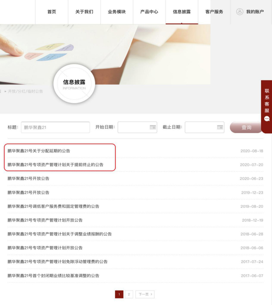 10月15日,鹏华资产官网挂出来聚鑫1-25号终止清算公告,但未就兑付问题、持仓作出披露