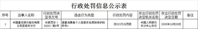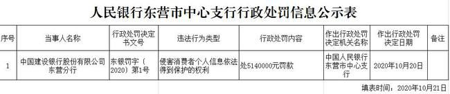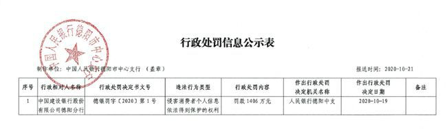 三、中国建设银行股份有限公司德阳分行、东营分行和娄底市分行存在侵害消费者个人信息依法得到保护的权利的违法行为,分别对其处罚款1406万元、514万元和533万元。(建设银行建德支行信息暂未公示)