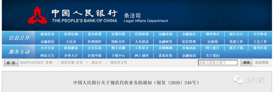 中国人民银行关于规范代收业务的通知(银发〔2020〕248号)