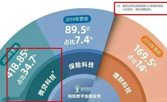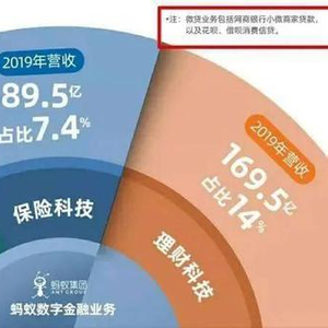 蚂蚁绝大部分的营收,都和金融有关,根据披露的数据,蚂蚁集团有10亿+个人用户,8000万+商家用户,微贷科技平台贷款余额中消费信贷1.7万亿,经营者信贷4000亿(花呗借呗等),理财科技平台资产管理规模4.1万亿(基金余额宝等),保险科技平台518亿(卖保险),此外还有创新业务,如区块链、数据库等。2020年上半年,从收入侧以上几部分比例分别为36:39:15:8,其中微贷科技平台占比高达39%,是其第一大营收来源。华泰测算蚂蚁集团超7成利润来自微贷。所以,蚂蚁究竟是一家金融公司,还是一家科技公司?毕竟搞金融需要牌照,科技不需要牌照。我们都懂。