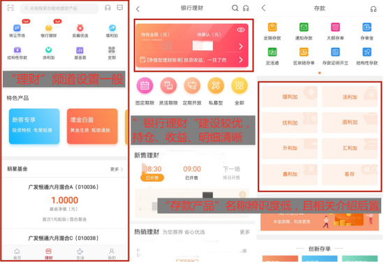 具体到各大产品条线,“银行理财”建设较优,不论是持仓/收益情况,还是产品/服务的推荐,亦或是产品丰富度和收益水平都比较有吸引力。而基金、保险条线的建设相对落后,相关产品虽然丰富,但缺乏系统性建设,对用户没有形成购买引导力。此外,浙商银行APP代销了资管、信托等产品,提供了积存金、实物金的购买,提供银证转账服务、基金组合智能投资服务。值得一提的是,APP“转让市场”比较有特色,支持理财产品、大额存单等的转让。