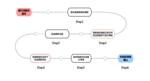 一是银行自行调解转确认模式。银行在催收过程中,与欠款人达成还款方案后,前往调解机构签订调解协议。