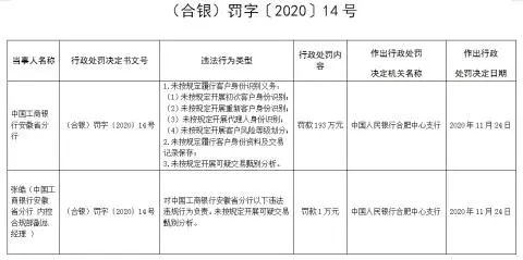 近来,反洗钱处罚日益增加,洗钱风险已是银行面临的重大风险之一。12月2日,中国人民银行合肥中心支行公布一则罚单,中国工商银行安徽省分行因多项违规被罚款193万。