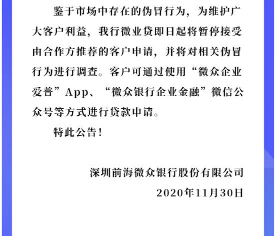 为了支撑快速发展策略,“微业贷”采用了直销和渠道合作的方式展业,引发了很多代理商层层收费问题。11月底,微众银行宣布暂停接受合作方推荐的客户申请“微业贷”。
