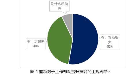 制造业蓝领的工作大部分是在工厂中进行,因而他们的工作必须有特定的机械工具以及相应的元器件、原材料等。在工厂之外的环境中,蓝领工人没有办法获得这些生产资料进行自我训练和学习,而在工厂里,他们可以通过边工作边学习的方式,并随着时间的增加,能够更熟练地操作这些机械和工艺,这也就是半数以上的人表示他们认为工作可以帮助他们提升自身技能的重要原因。