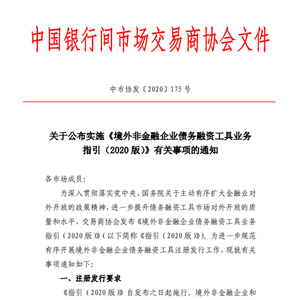 境外非金融企业债务融资工具业务指引(2020版)发布