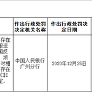 12月30日消息,人民银行广州分行公布的行政处罚信息公示表显示,广州市汇聚支付电子科技有限公司因未按规定履行客户身份识别义务、未按照规定报送可疑交易报告、为虚假交易提供支付服务,合计被处罚款220万元。