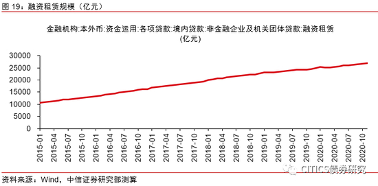 其余有公开可得数据的广义影子银行包括证券公司资管、保险公司资管、资产证券化、融资租赁、小额贷款公司贷款。其中,证券公司资管、小额贷款公司贷款规模近年呈现下降趋势。证券公司资管规模下降的主要原因是作为通道业务的定向资管计划的持续压降。其余项目保持稳定增长趋势。
