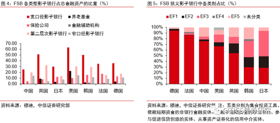 《中国影子银行报告》对影子银行的定义体现出中国影子银行与欧美等发达国家有不同的特征。中国影子银行主要体现为“银行的影子”,银行理财占比较高,通道业务较为盛行,而这些特征并未被国际主流定义强调。另外,被国际主流定义模式强调的资产证券化等业务在中国影子银行中的比例并不高,银保监会报告中仅占4.5%。金融稳定理事会在《全球影子银行监测报告》中也提到,影子银行业务的定义可能不存在国际通行口径,要视不同经济体的金融体系和监管体系的具体情况而定。
