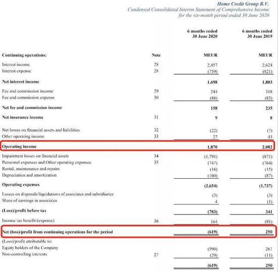 2020年上半年,捷信营收18.70亿欧元(约合144亿元),同比2019年同期的20.82亿欧元下降10.18%;净利润为-6.19亿欧元(即亏损48.4亿元),2019年同期的净利润为2.5亿欧元。