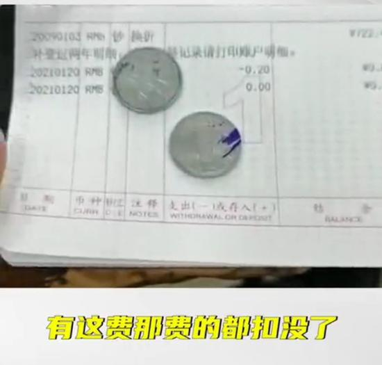 李女士说:“那个存折是09年的时候忘到那了,然后昨天去取了,722块钱就取了2毛。有这费那费的都扣没了!他说你再晚来几年还得倒贴!”