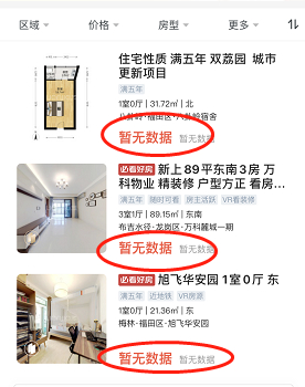 今日一早,记者登录链家网APP就发现,挂牌价不翼而飞,变成了“暂无数据”。