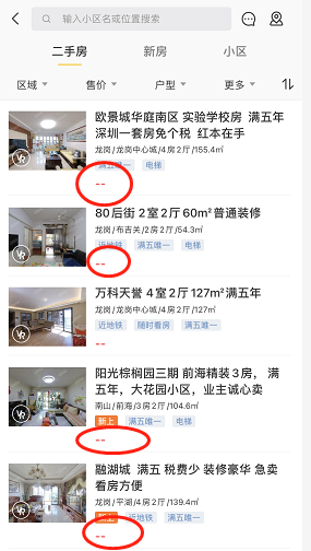 贝壳网,乐有家、Q房网等平台的挂牌价也都看不到了。