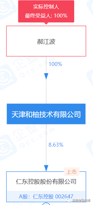 企查查显示,截至目前,郝江波的天津和柚技术还持有仁东控股8.63%的股份。