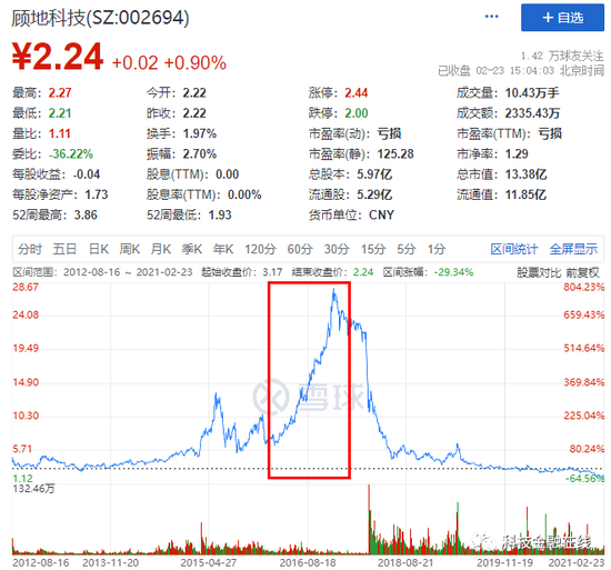 比如,彼时“德御系”控制的两只A股北讯集团和顾地科技,自从“德御系”入主后股价都开启暴涨模式。北讯集团在2017年至2018年间的涨幅超过60%;顾地科技则更加疯狂,2016年一年的涨幅便超过160%。