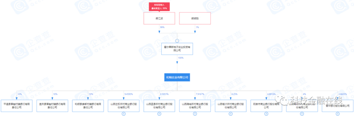 据企查查显示,截至目前,田文军的夫人郝江波控制的和柚实业,对外投资的银行多达10家,分别是:平遥县晋融村镇银行、壶关县晋融村镇银行、和顺县贵都村镇银行、山西左权农商行、山西盂县农商行、山西潞城农商行、山西榆次农商行、阳泉市商业银行、山西寿阳农商行、晋中银行。