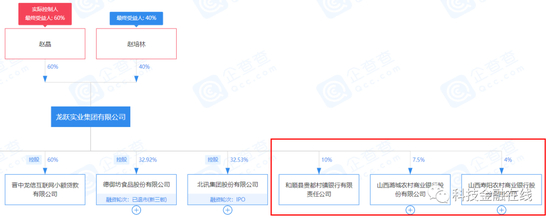 其中,和顺县贵都村镇银行、山西潞城农商行、山西寿阳农商行这三家银行的股东中,除了郝江波控制的和柚实业之外,“德御系”的龙跃集团也赫然在列。可见,“德御系”在这些银行中的持股比例都不小。