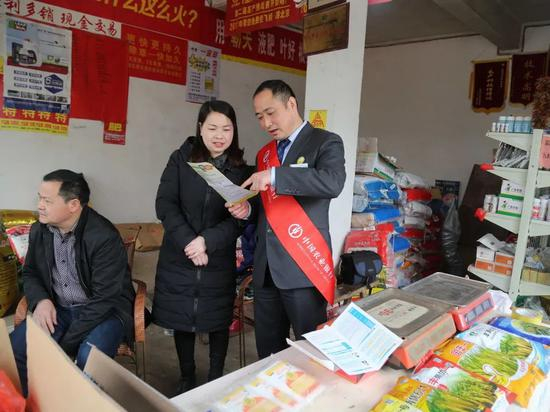 农行江西分行客户经理在农贸市场农资销售点讲解支农优惠政策