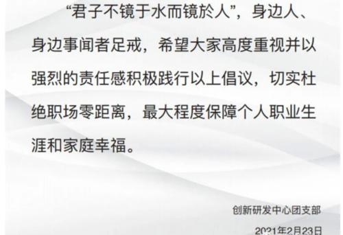 创研中心还在《倡议书》最后指出,要切实杜绝职场零距离,最大程度保障个人职业生涯和家庭幸福。