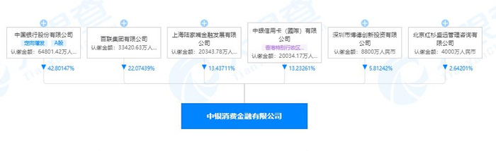 天眼查显示,大股东是中国银行,持股42.80%;第二大股东为百联集团,持股22.07%,第三大股东为上海陆家嘴金融发展有限公司,持股13.44%。