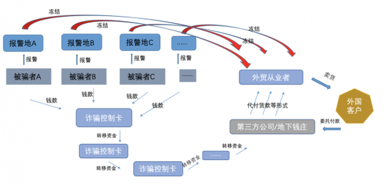 义乌公安局致信中也提到,“断卡行动”及打击深入,电信网络诈骗案件犯罪团伙与地下钱庄勾结更趋紧密,将诈骗赃款直接变现成货款转给经营户进行洗白,造成义乌经营户银行账户被全国各地公安机关冻结情况频发。