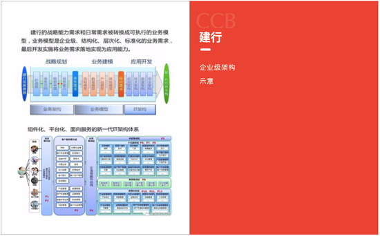 阿里搭建“数据中台”,腾讯搭建“技术中台”,头条搭建“直播中台”。京东、美团、滴滴等等也都在推行自己的“中台”。建行的企业级架构如今已闻名天下,工行也宣布完成了企业级业务架构。