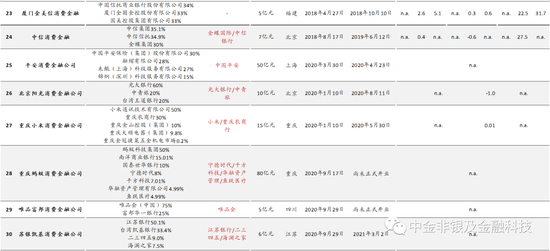 图表: 当前银保监会批准筹建的30家消费金融公司一览