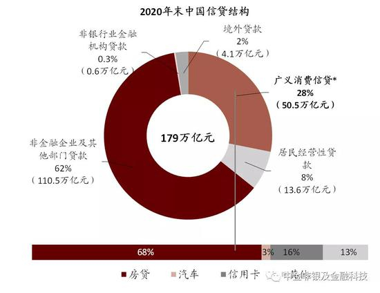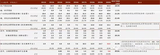 资料来源:央行,银保监会,银行业协会,中金公司研究部;注:广义消费信贷基于金融机构口径进行调整;括号中为贷款规模占比