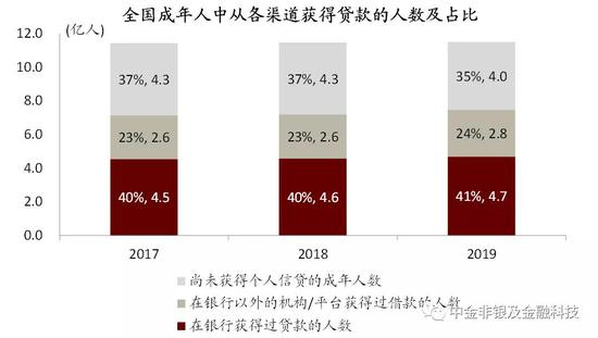 图表: 渠道端客户数维度:成年人中~24%在银行外的渠道获得过借款
