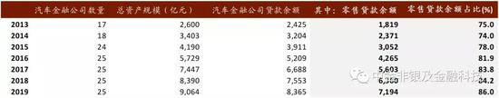 据银行业协会统计,截至2019年末我国共有25家汽车金融公司,资产规模9,064亿元、贷款余额8,365亿元,其中:零售贷款余额7,194亿元、占比86%。