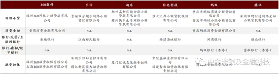 图表: 主要互联网平台旗下及关联方的消费信贷相关牌照总结