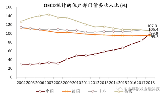 资料来源:经合组织OECD,央行,国家统计局,中金公司研究部;注:中国数据基于我们测算,2018年居民债务包含了公积金贷款等新增科目