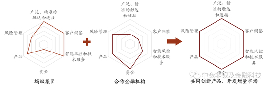 图表: 助贷平台与持牌金融机构的“长板效应”——双方能力互补、发挥各自禀赋(以蚂蚁集团为例)