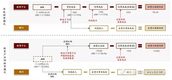 图表: 传统模式及轻资产助贷模式下不同的产业链价值分析