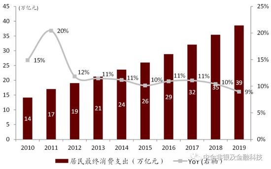 图表: 我们预计未来五年我国居民消费贷余额(不含房贷)复合增速有望达15%