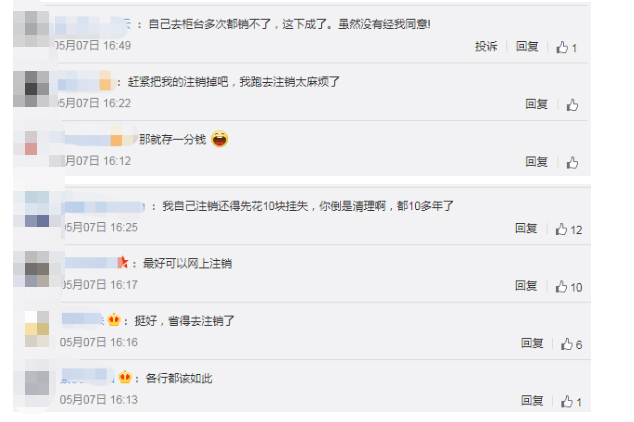 多位网友社交媒体上评论表示,希望银行能注销自己不用的银行卡。