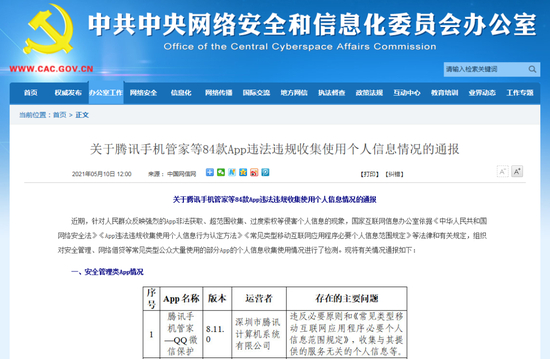 5月10日,国家互联网信息办公室(以下简称“网信办”)通报了84款APP违法违规收集使用个人信息情况,违规APP类型主要包括安全管理类与网络借贷类。