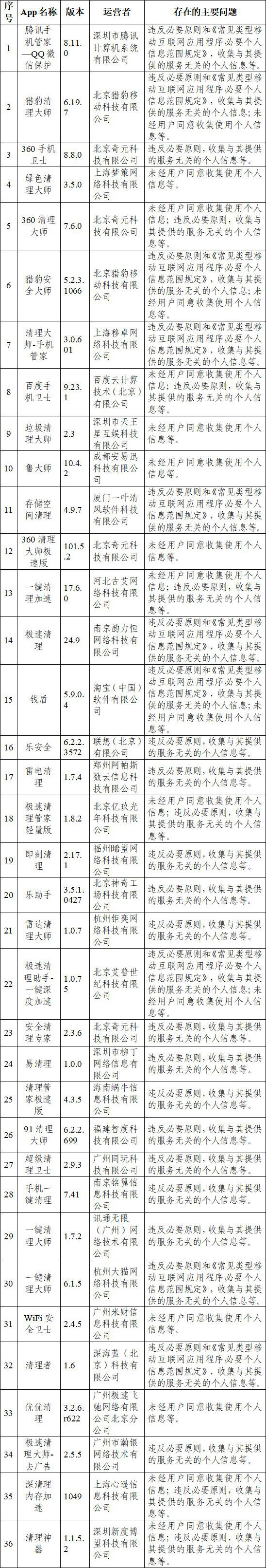 5月10日,国家互联网信息办公室(简称“网信办”)通报了腾讯手机管家、猎豹清理大师、360手机安全卫士等36款安全管理类App,以及平安好贷、平安消费金融、万达普惠等48款网络借贷类APP违法违规收集使用个人信息的情况。