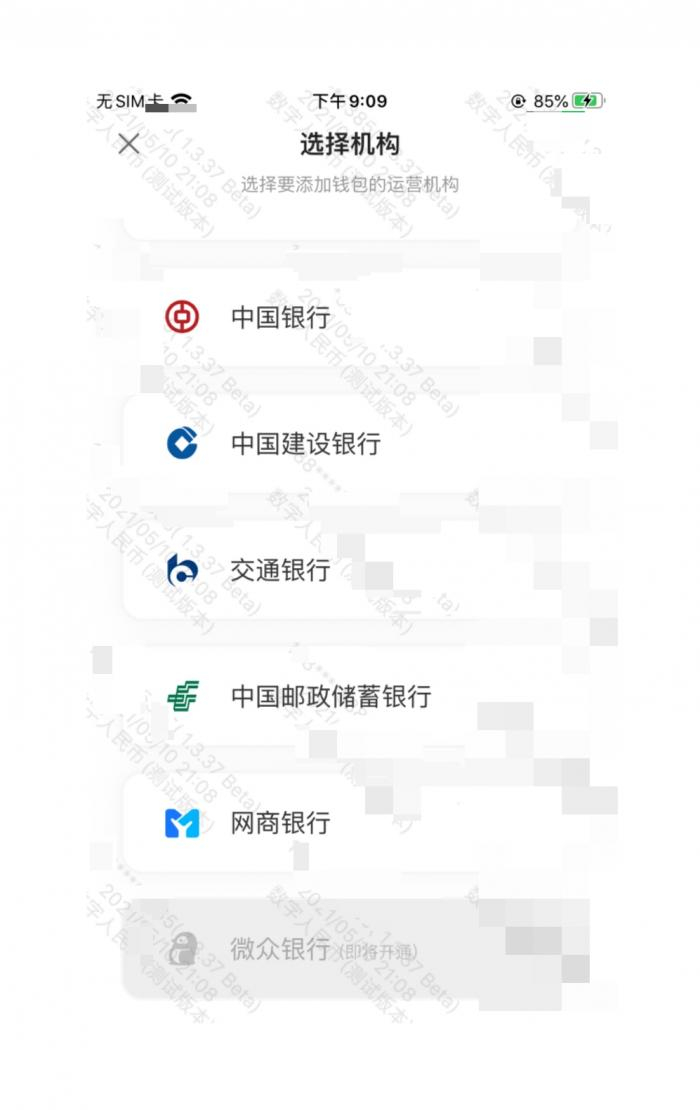 从目前的试点情况来看,双层运营体系中的商业机构主要是工行、农行、中行、建行、交行、邮储这六家国有银行,另外数字人民币APP上线支出还给网商银行、微众银行预留了入口,显示为灰色“即将开通”的状态。不过,网商银行近日已经被点亮。