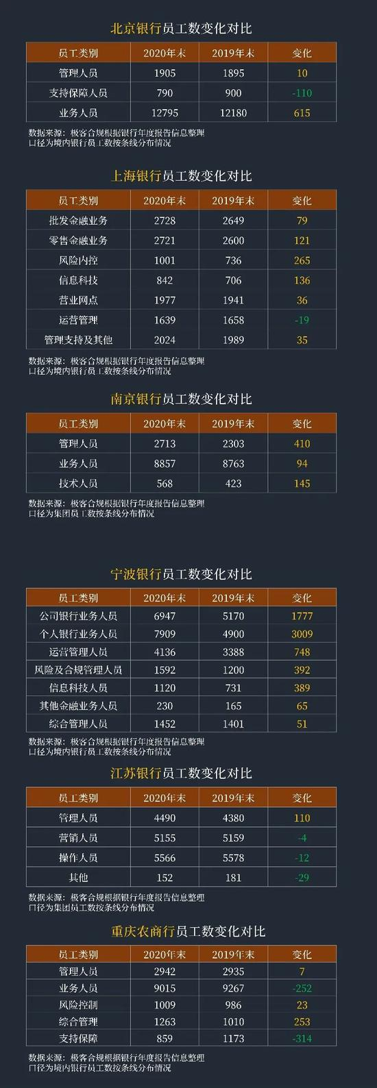4、宁波银行总体新增6431人,公司银行和个人银行业务人员、运营管理人员、风险及合规管理人员、信息科技人员等均有所增加;