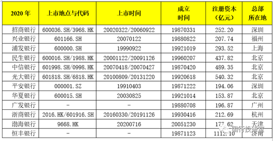 12家股份行中目前有10家上市,其中5家A+H股上市银行(分别为招行、民生银行、中信银行、光大银行与浙商银行);4家纯A股上市银行(分别为兴业银行、浦发银行、平安银行与华夏银行);1家纯H股上市银行(渤海银行)。也即目前仅广发银行与恒丰银行两家股份行未实现上市目标。