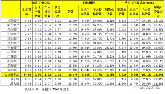 (1)截至2020年底,12家股份行的制造业贷款余额达到2.73万亿、个人住房贷款余额为6.38万亿(全部房地产贷款余额为9.29万亿)。