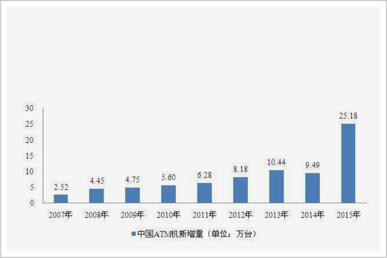 从2004年开始,银行对ATM的需求进一步爆发。2005年末,我国ATM保有量为9.5万台,到2015年,这个数字已猛增至86.67万台。中国也因此成为全球最大的ATM销售市场。