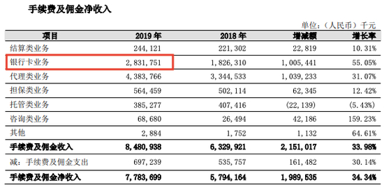 宁波银行2019年年报手续费及佣金净收入部分