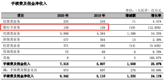 而在“银行卡业务”收入的构成中,最大的贡献就来自信用卡分期收入。在年报会计处理中,信用卡分期手续费收入是归于中间业务收入还是利息收入,行业一直存在争议。据2021年2月5日银保监会等发布的《关于严格执行企业会计准则切实加强企业2020 年年报工作的通知》(财会〔2021〕2 号),明确了信用卡分期收入调整为利息收入。