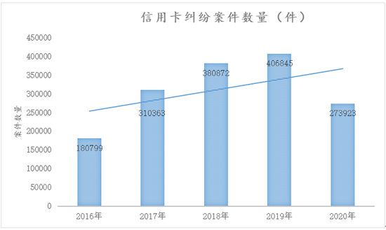 3.以下是笔者梳理的,单以信用卡纠纷案为例的近几年案件数量,图三: