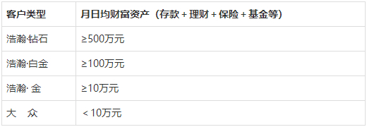 私人银行级:月日均金融资产800万元(含)以上;七 星 级:月日均金融资产600万元(含)-800万元(不含);六 星 级:月日均金融资产100万元(含)-600万元(不含);五 星 级:月日均金融资产20万元(含)-100万元(不含);四 星 级:月日均金融资产5万元(含)-20万元(不含);三 星 级:月日均金融资产1万元(含)-5万元(不含);二 星 级:月日均金融资产1万元以下(不含零余额);准 星 级:月日均金融资产余额为零。