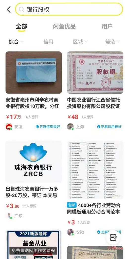 闲来无事逛闲鱼,居然发现有卖家在闲鱼上卖股权,而且是银行的股权,而且是银行的原始股权,而且是带股权证的银行的原始股权,数量还不在少数。