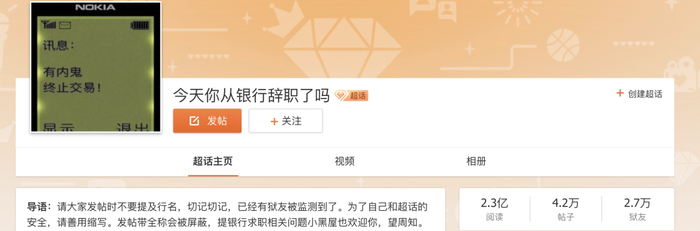 “今天你从银行辞职了吗?”微博超话隔几分钟就会增加数条讨论,仿佛越来越多年轻人开始“逃离”银行。